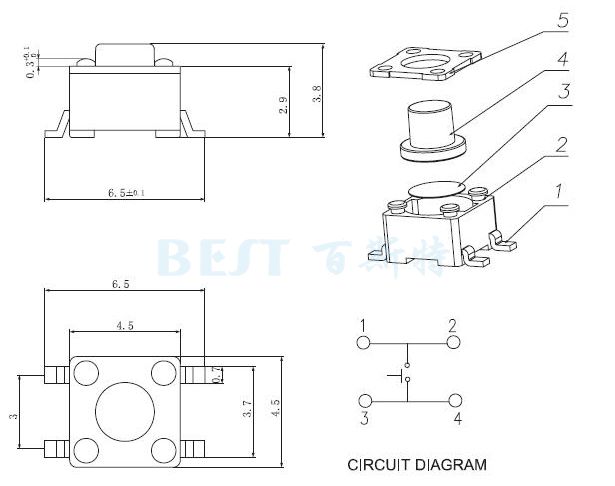 TS-1101E是3×6×4.3輕觸開關(guān),焊接腳距是8.70,按鍵頭有黑色和白色兩種,袋裝為1000PCS/包,編帶3000PCS/盤,可過回流焊240度高溫.